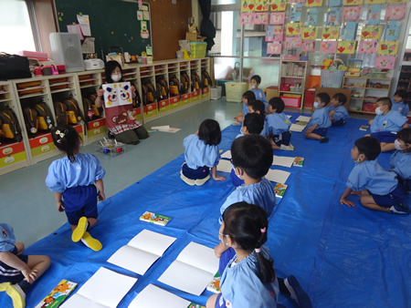 年長さん、誰からともなく「虹」を歌いだし