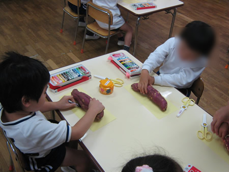 自分で掘ったお芋は、自分の袋に入れてお持ち帰り!