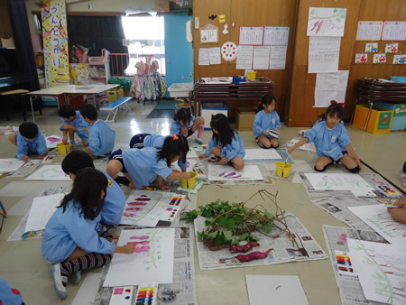 自分で掘ったお芋は 自分の袋に入れて・・・