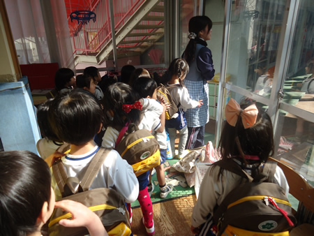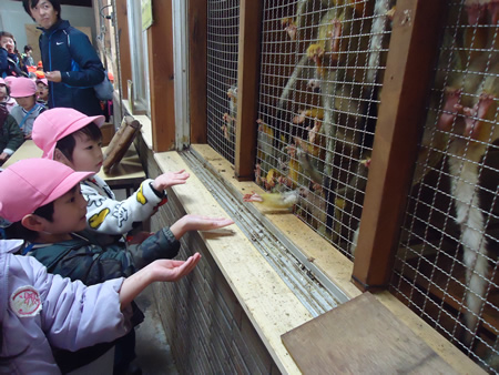 みんなが乗る動物バスは 雪下ろしの真っ最中。