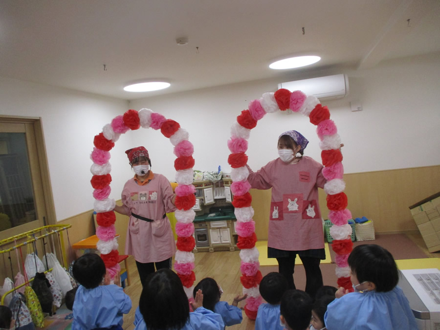 卒園式にくぐるアーチづくりを。